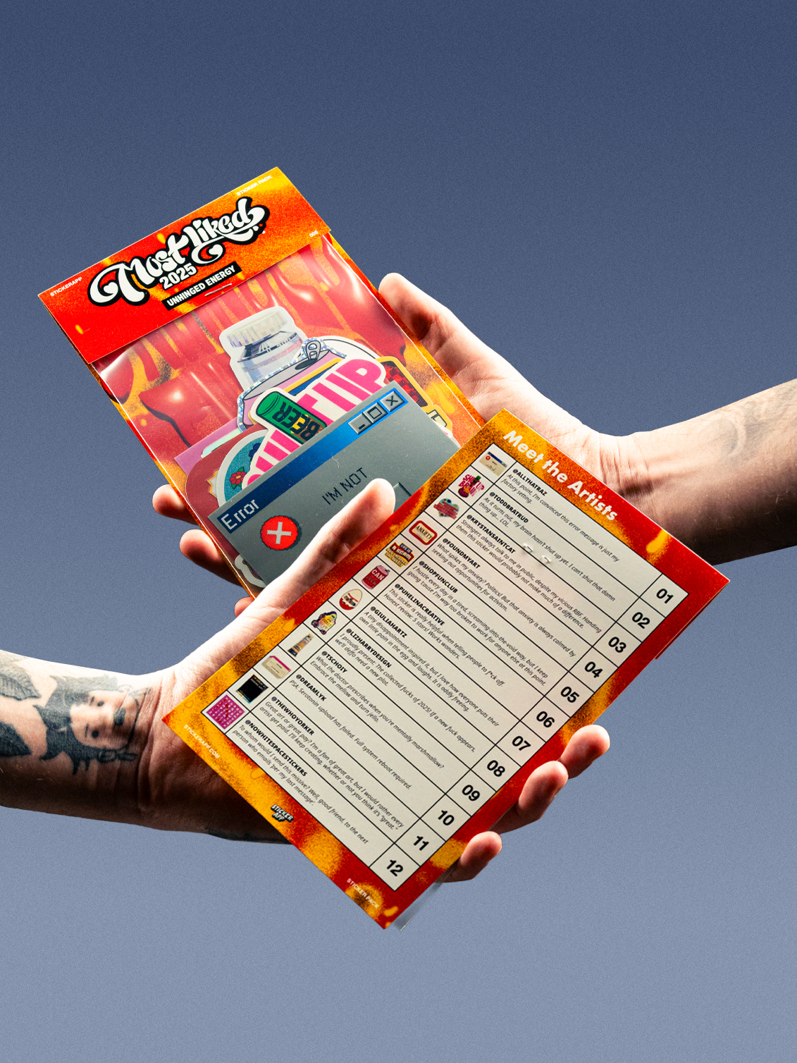 Pedimos aos artistas por trás dos stickers mais populares de 2025 para nos darem algum contexto sobre o sticker “Unhinged Energy”. E foi isto que disseram: